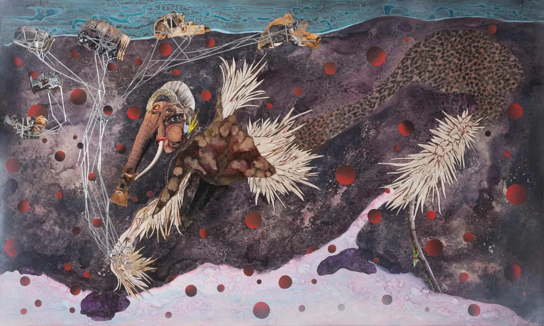Kenyan-American artist Wengechi Mutu explores contemporary and global issues including self-image, and cultural constructs. Mutu makes powerful collages out of ethnographic photography, 19th-century medical illustrations, and magazine pornography. She calls herself “an irresponsible anthropologist and irrational scientist,” creating art while exploring questions of self-image, gender constructs, cultural trauma and environmental destruction.