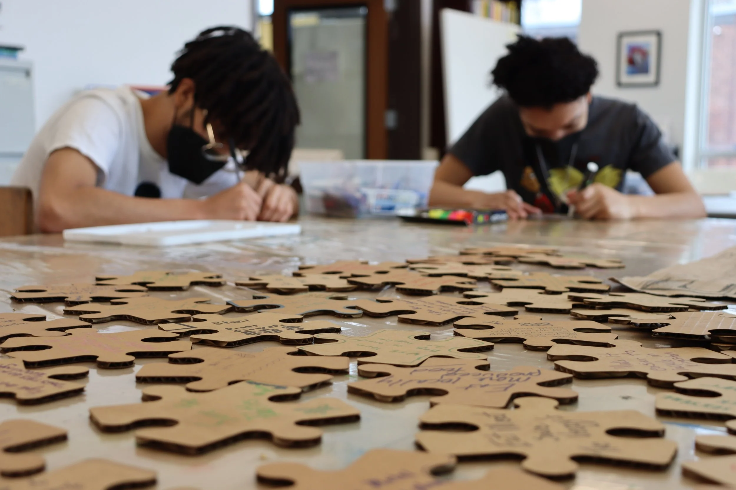 On April 10th, an art installation made by Maxine Leu was put up at the D.R.A.W., composed of recycled cardboard cut into puzzle pieces. From then til the end of Eco Arts Week, the artist invited people to write messages about how to live healthier lives and be more conscious of our environment.