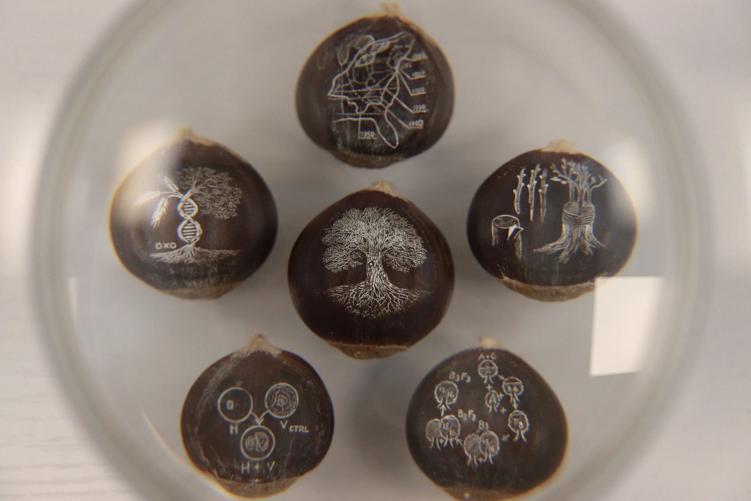 Later on the 14th, Sergey Jivetin came to the D.R.A.W. and hosted a seed engraving workshop. Sergey has a background in jewelry design that lends itself to this extraordinary display. As an artist-miniaturist, what Sergey did was engrave seeds with detailed images based on the narrative between seeds and those who use them. He utilized an elaborate machine to carve these miniature works of art, and participants were invited to tell their own story, with which Sergey would use to carve an illustration.