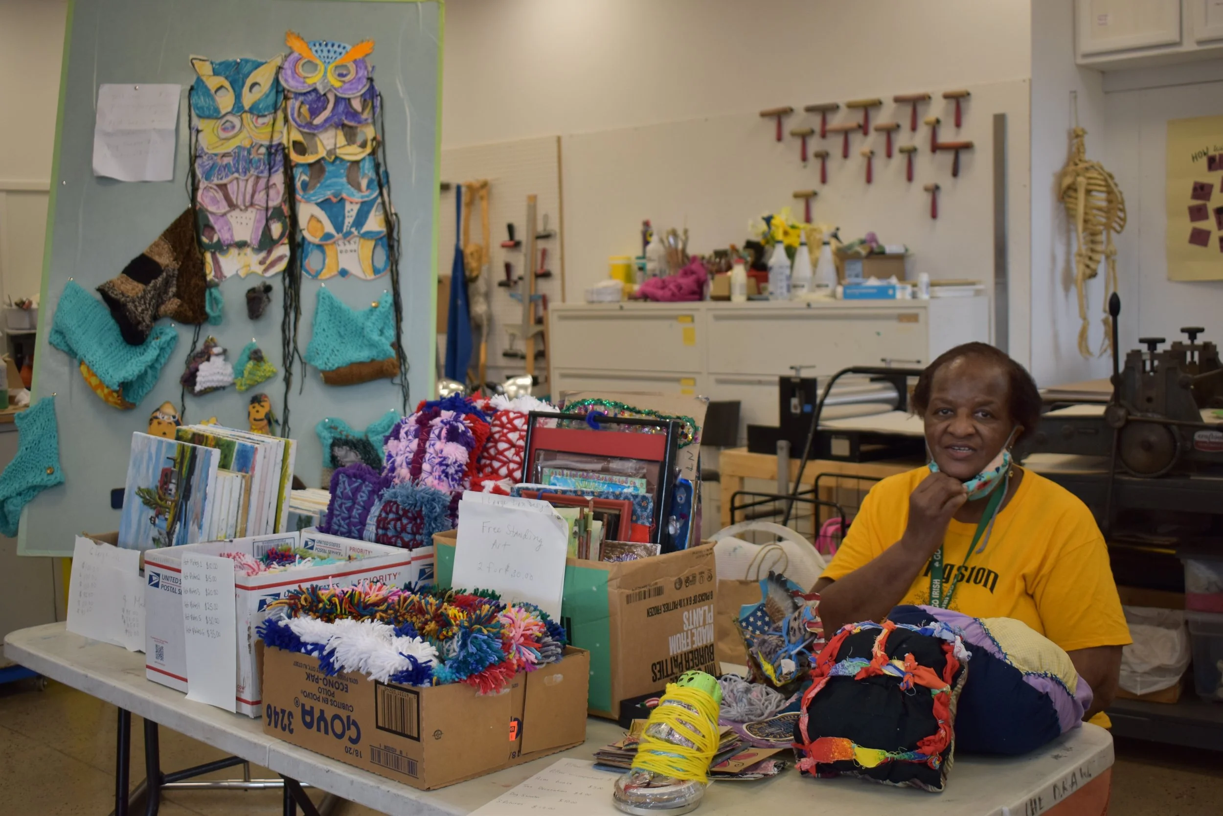 Towards the tail end of the yard sale a young girl came inside. She was asked what she liked to make. She knew exactly what she wanted, and when we let her keep the markers and sketchbook she picked out, she was ecstatic. When her mother came to pick her up, the little girl literally screamed in excitement. It was exactly the kind of happiness we want to bring.